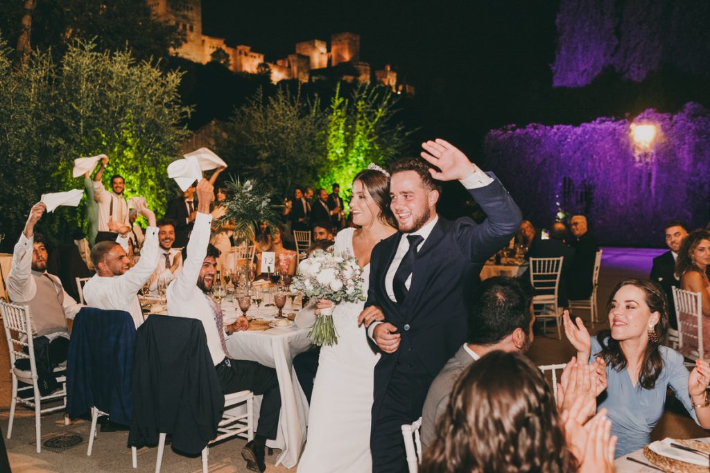 Tras unos preparativos rodeados de su familia, se casaron en la Iglesia de Santos Justo y Pastor de Granada, una de las iglesias mas famosas de la ciudad. Tras una preciosa ceremonia religiosa, la celebración fue en el Palacio de los Córdova, Granada y que actualmente es llevado por el Catering Abades. Este lugar está muy cerquita del emblemático Paseo de los Tristes de Granada, algo que siempre os encanta. Las vistas de este patio andaluz a la Alhambra son increíbles y todos los invitados disfrutaron de los exteriores de este lugar icónico de la ciudad de Granada.