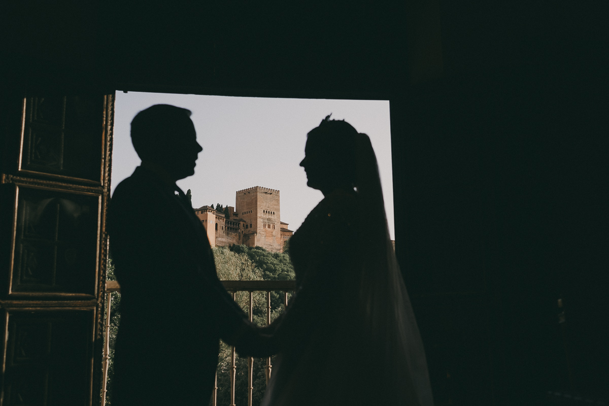 Tras una salida de arroz espectacular con cañones de pétalos blancos, nos fuimos a disfrutar de unas fotos de pareja en el Palacio de los Córdova con unas vistas maravillosas a la Alhambra. Todo estaba preparado para recibir a los novios y para que disfrutasen de un cocktel en la compañía de todos sus invitados. No te puedes perder la decoración de esta boda y todos los detalles que la hacen espectacular.