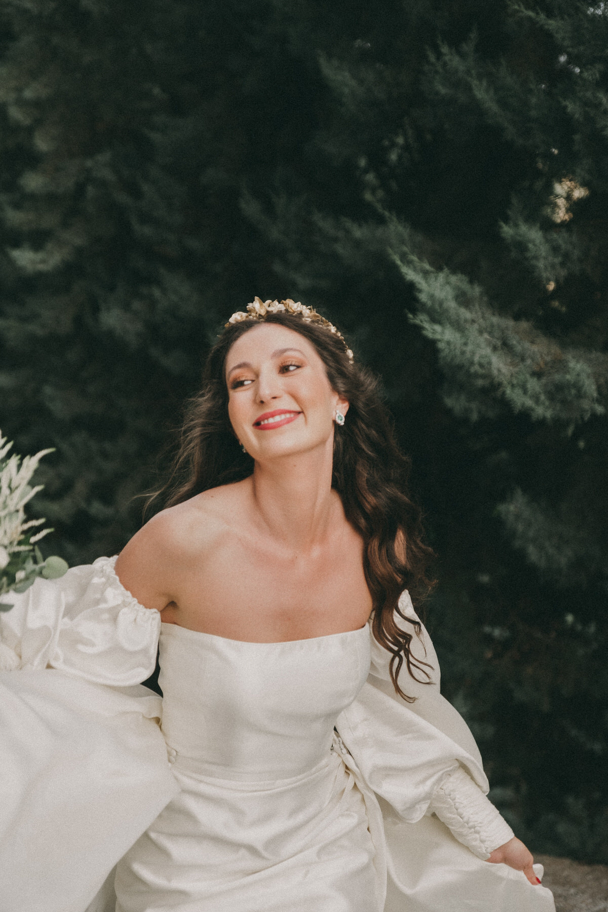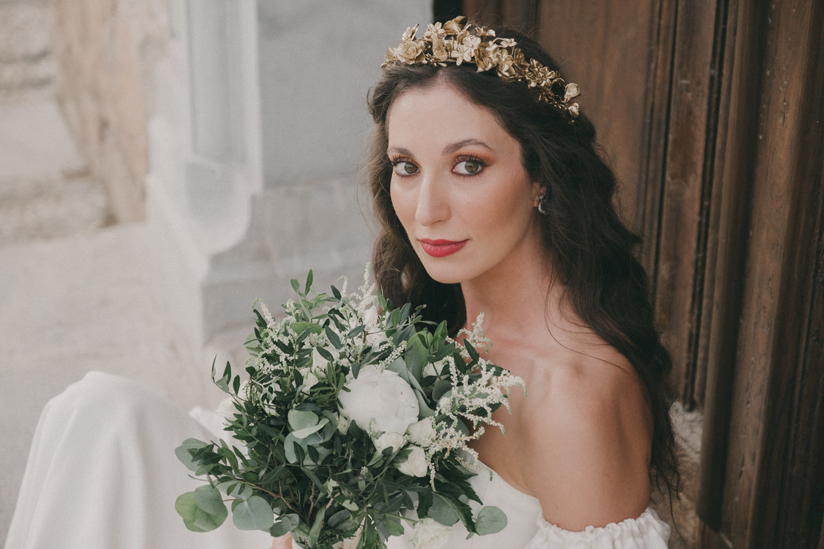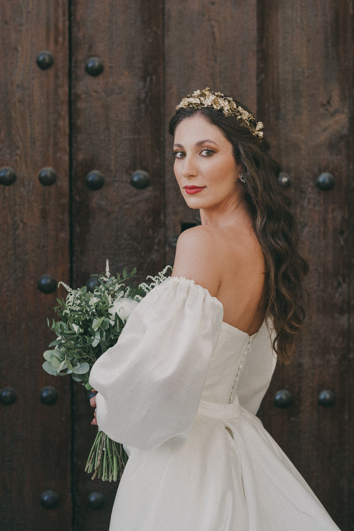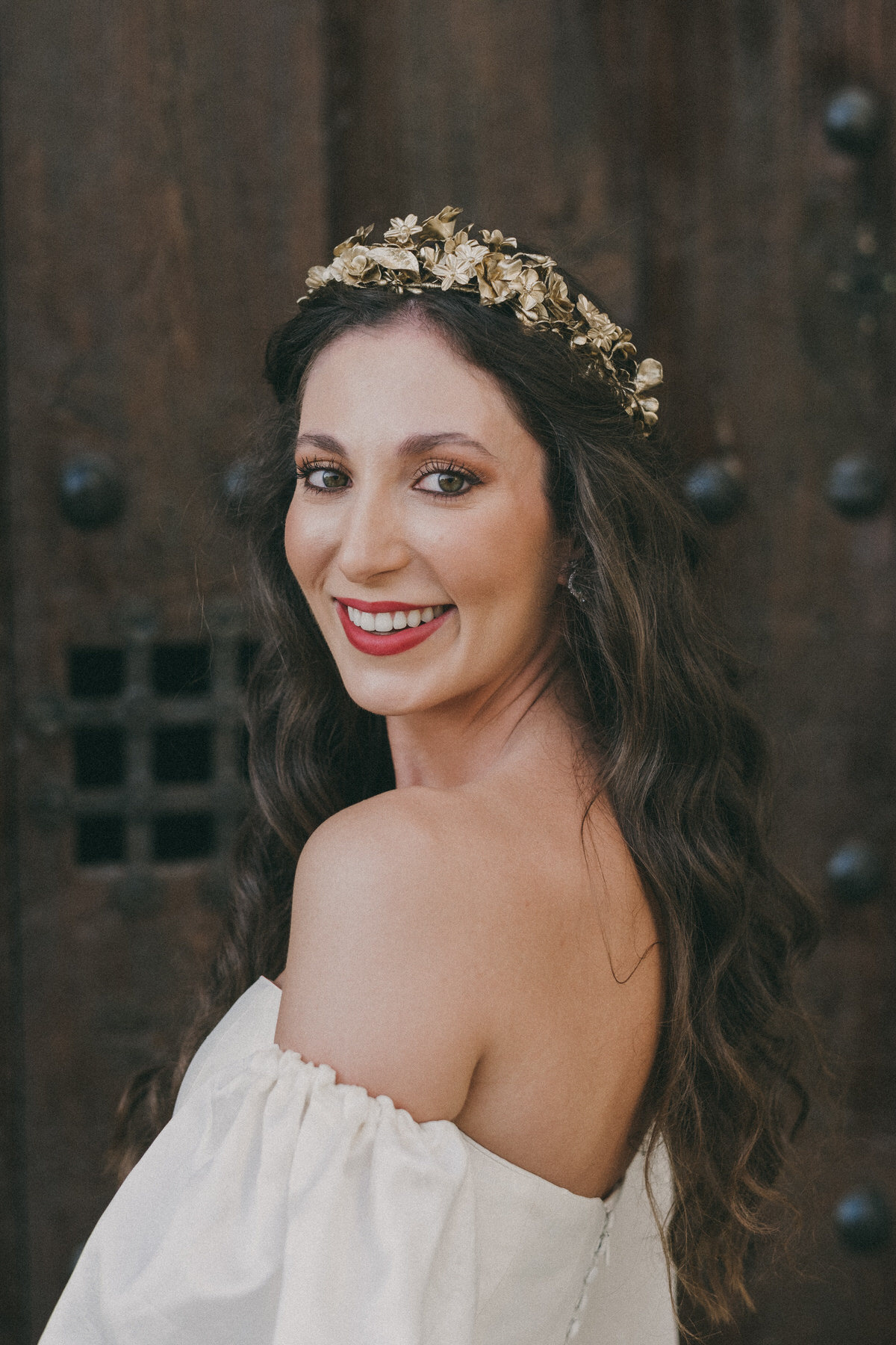 Sabemos que muchas de vosotras estáis enamoradas del look de Selene. Así que os compartimos algunos de los proveedores de su boda que más nos gustan y que tambié estuvieron presentes en la postboda. El tocado es obra de Silvia Peinado. Esta diseñadora, fusionó la Grecia antigua con el toque moderno que tenía el vestido de Selene de Slabon Moda. El maquillaje lo realizó Alicia Herrainz, que siempre nos sorprende con esos looks de novia naturales y piel fresca que no dejan indiferente a nadie.