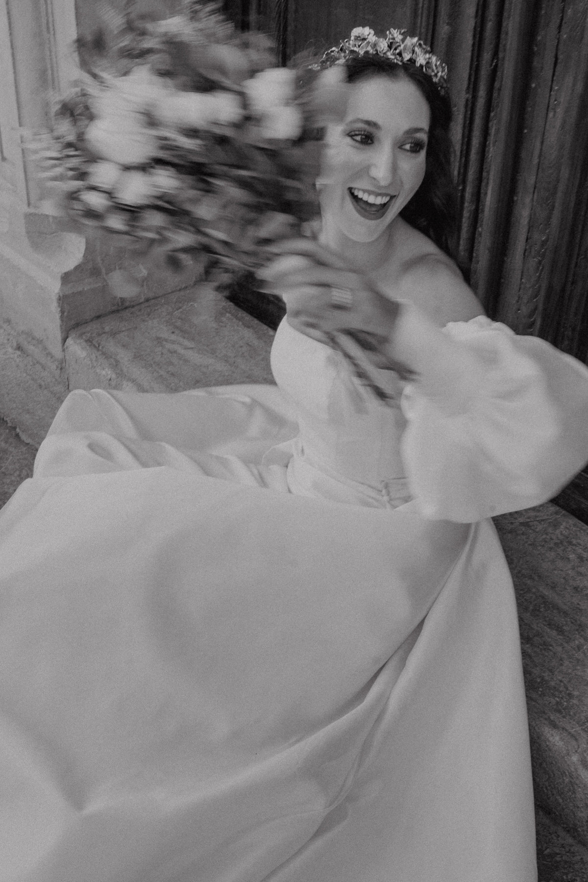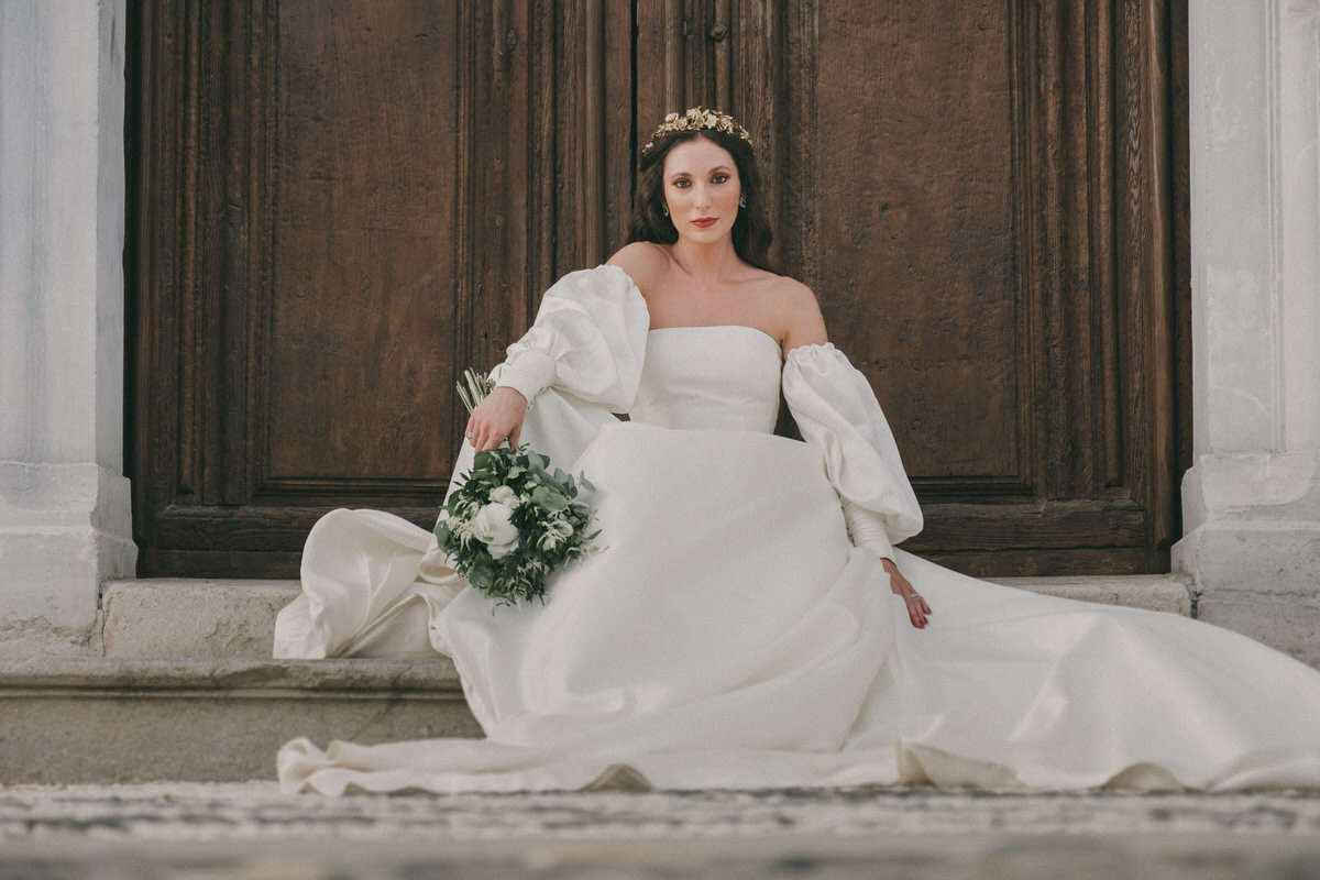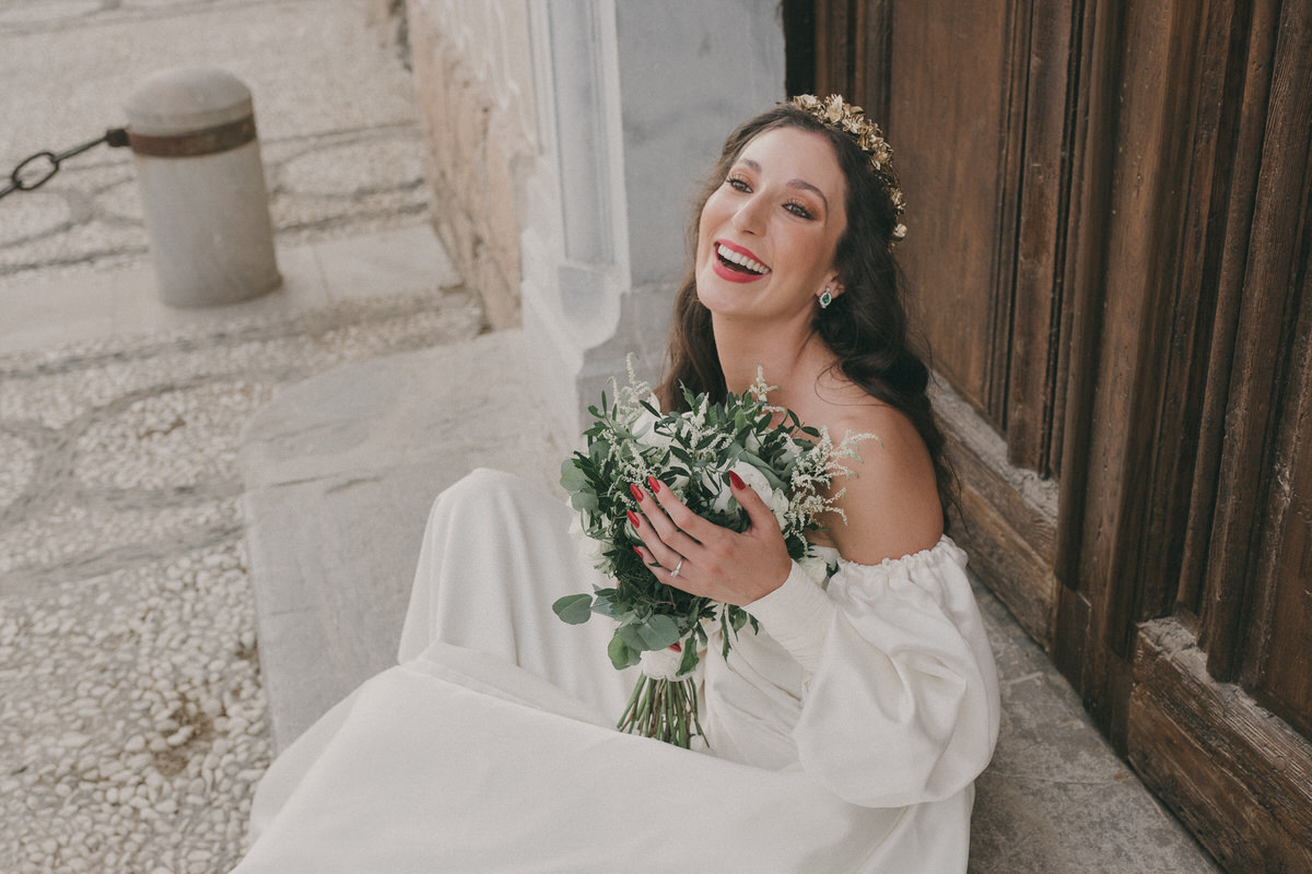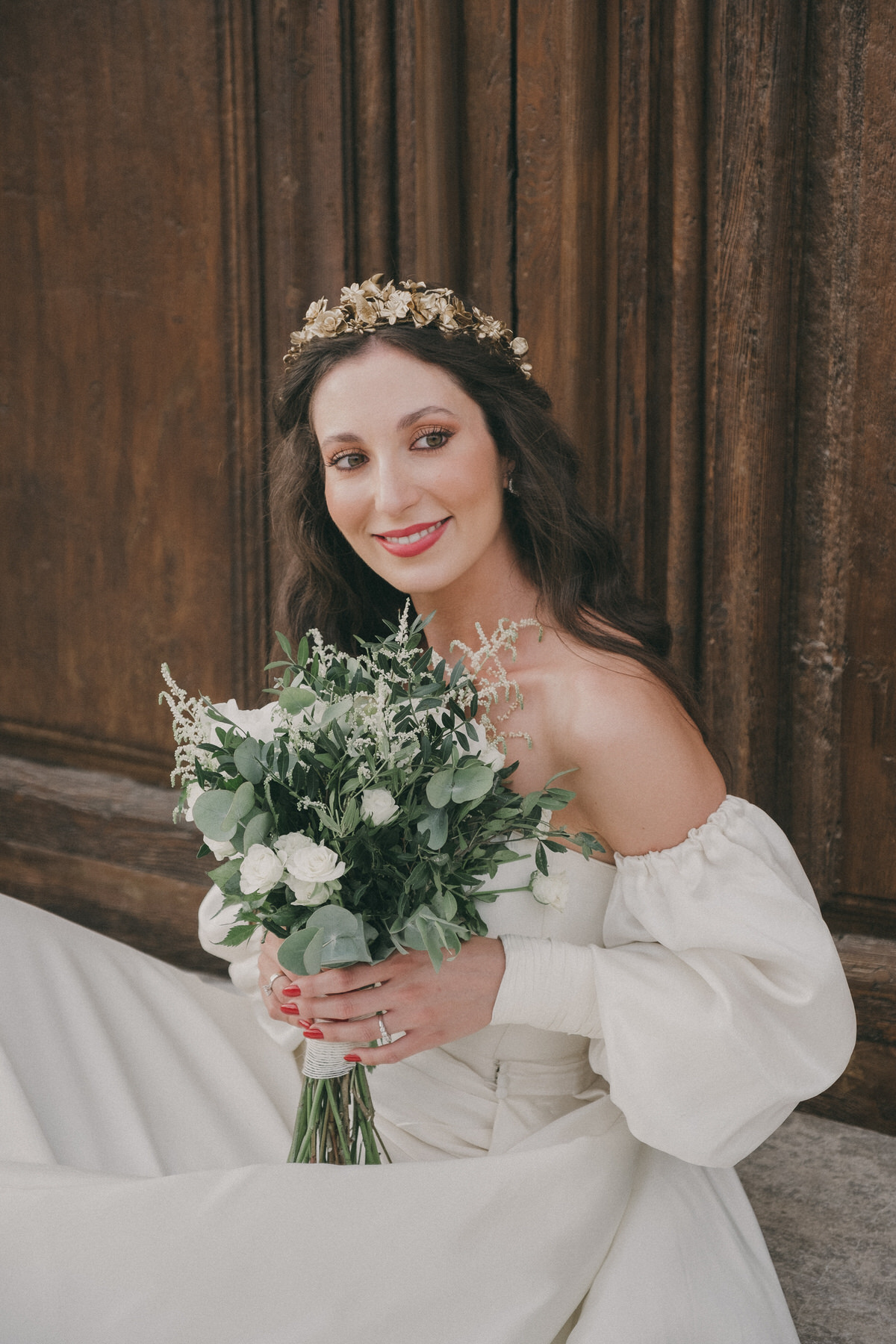 Sabemos que muchas de vosotras estáis enamoradas del look de Selene. Así que os compartimos algunos de los proveedores de su boda que más nos gustan y que tambié estuvieron presentes en la postboda. El tocado es obra de Silvia Peinado. Esta diseñadora, fusionó la Grecia antigua con el toque moderno que tenía el vestido de Selene de Slabon Moda. El maquillaje lo realizó Alicia Herrainz, que siempre nos sorprende con esos looks de novia naturales y piel fresca que no dejan indiferente a nadie.