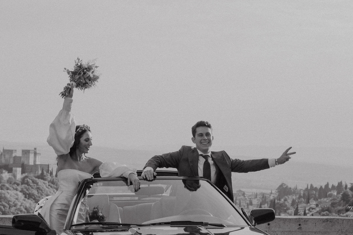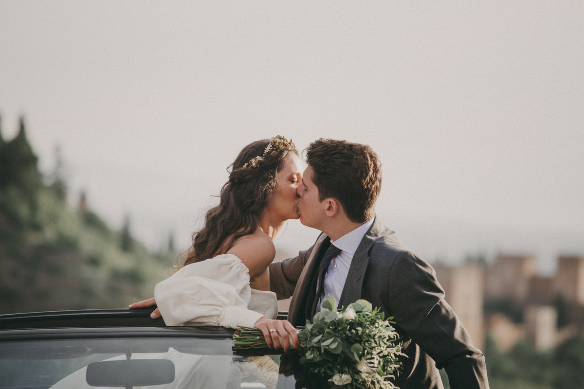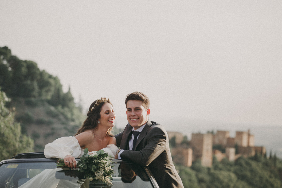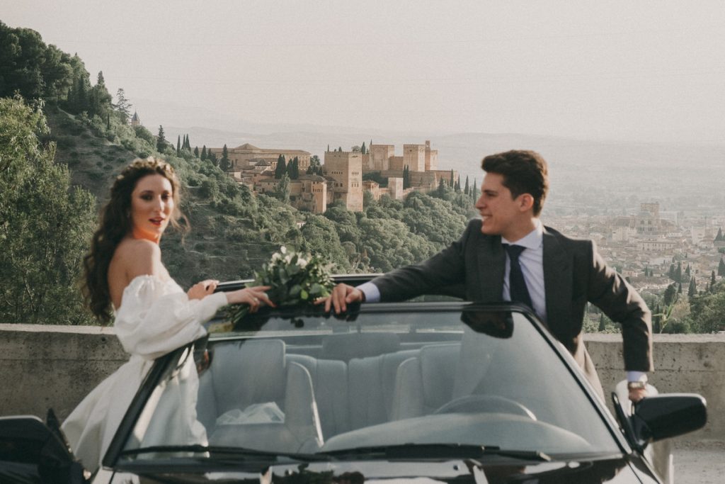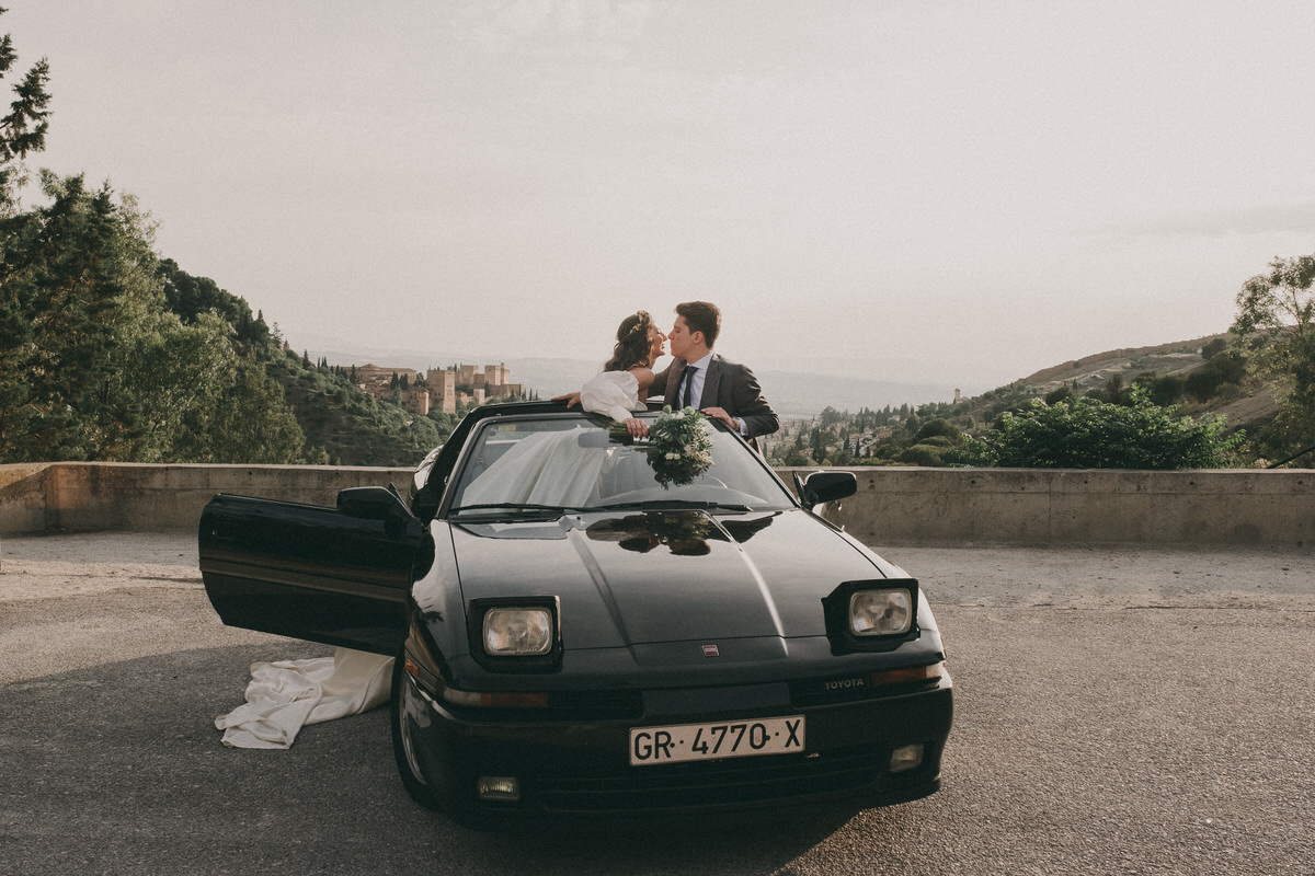 Para enseñaros este tipo de lugares, os traemos el ejemplo perfecto de una pareja muy top que les apetecía tener el recuerdo de la Alhambra en su postboda pero sin las fotos típicas en el interior del monumento. Esta vez huímos de los Palacios Nazaríe, de los jardines del Generalife o del mítico Palacio de Carlos V. Ellos querían algo más rompedor y moderno. Así que combinamos nuestra manera de captar esos momentos naturales de pareja con esa pizca de locura que nos caracteriza. Y si ya le unimos un increíble Toyota antiguo descapotable tenemos un buen cocktail de ingredientes con el que jugar en una postboda.