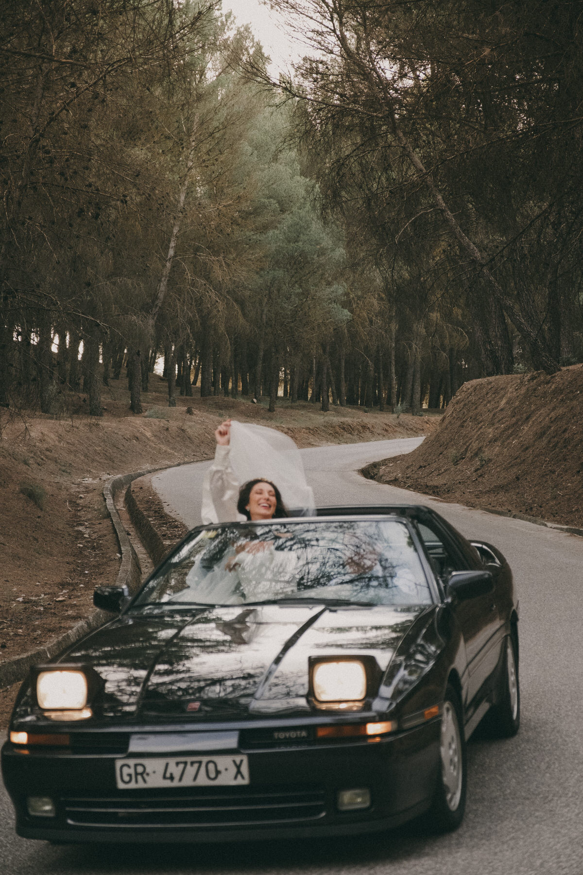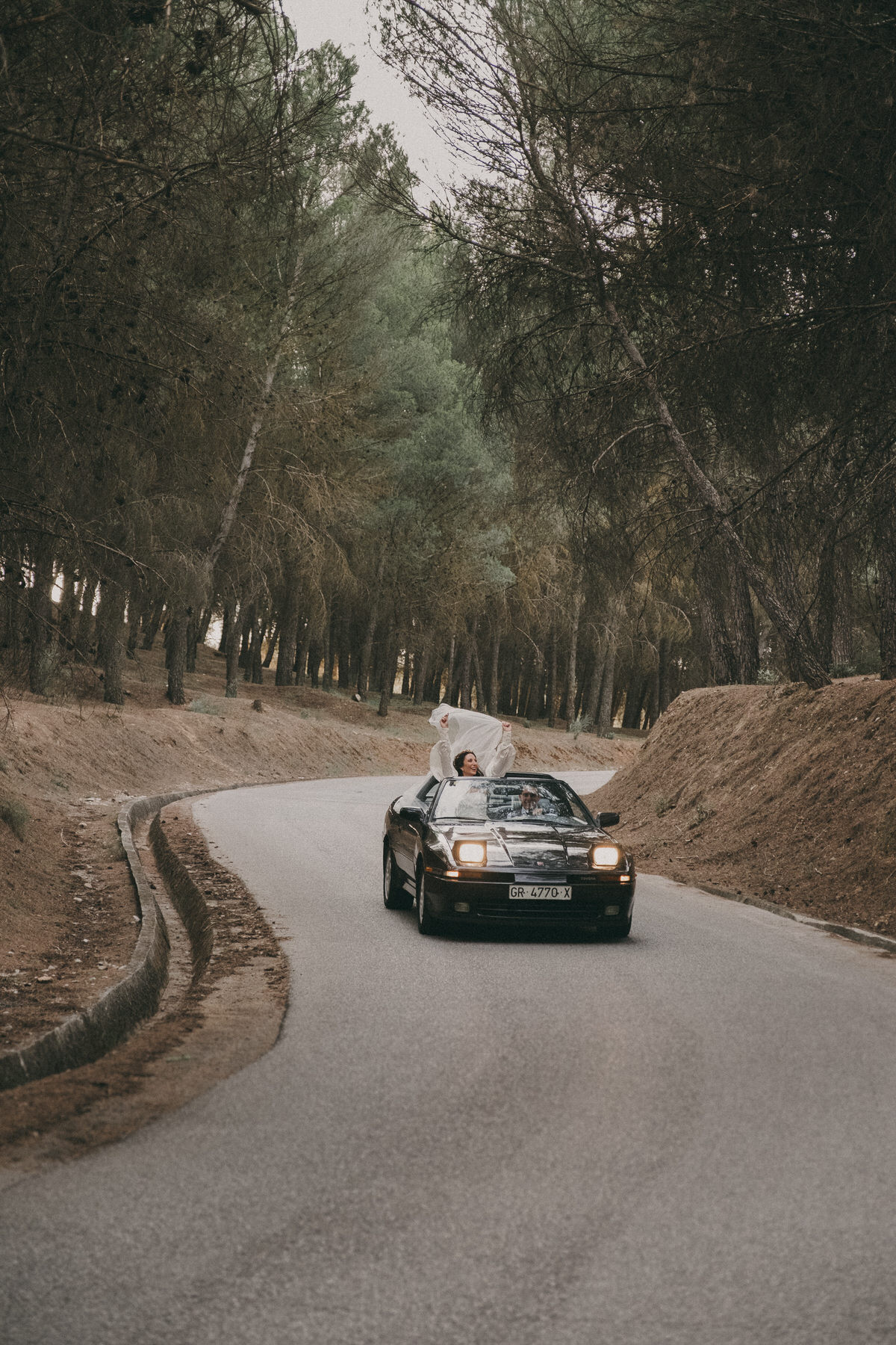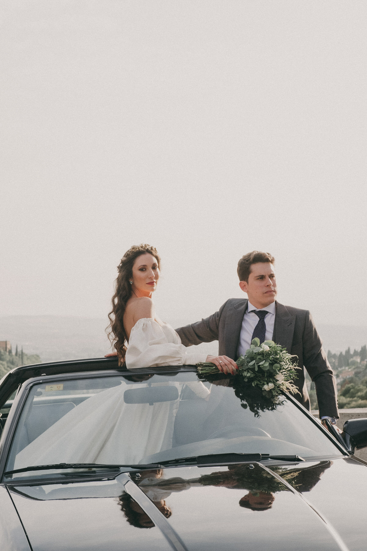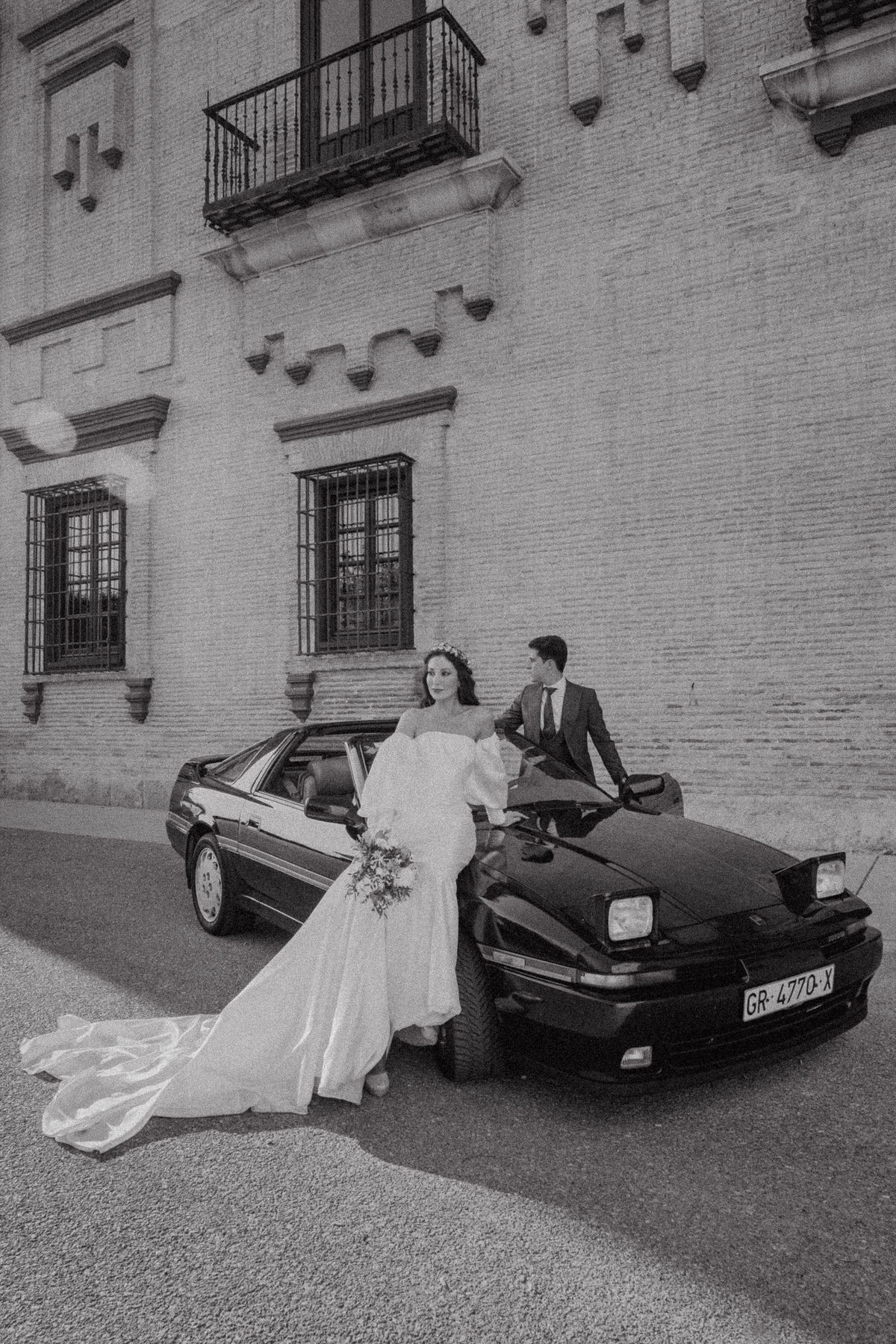Para enseñaros este tipo de lugares, os traemos el ejemplo perfecto de una pareja muy top que les apetecía tener el recuerdo de la Alhambra en su postboda pero sin las fotos típicas en el interior del monumento. Esta vez huímos de los Palacios Nazaríe, de los jardines del Generalife o del mítico Palacio de Carlos V. Ellos querían algo más rompedor y moderno. Así que combinamos nuestra manera de captar esos momentos naturales de pareja con esa pizca de locura que nos caracteriza. Y si ya le unimos un increíble Toyota antiguo descapotable tenemos un buen cocktail de ingredientes con el que jugar en una postboda.